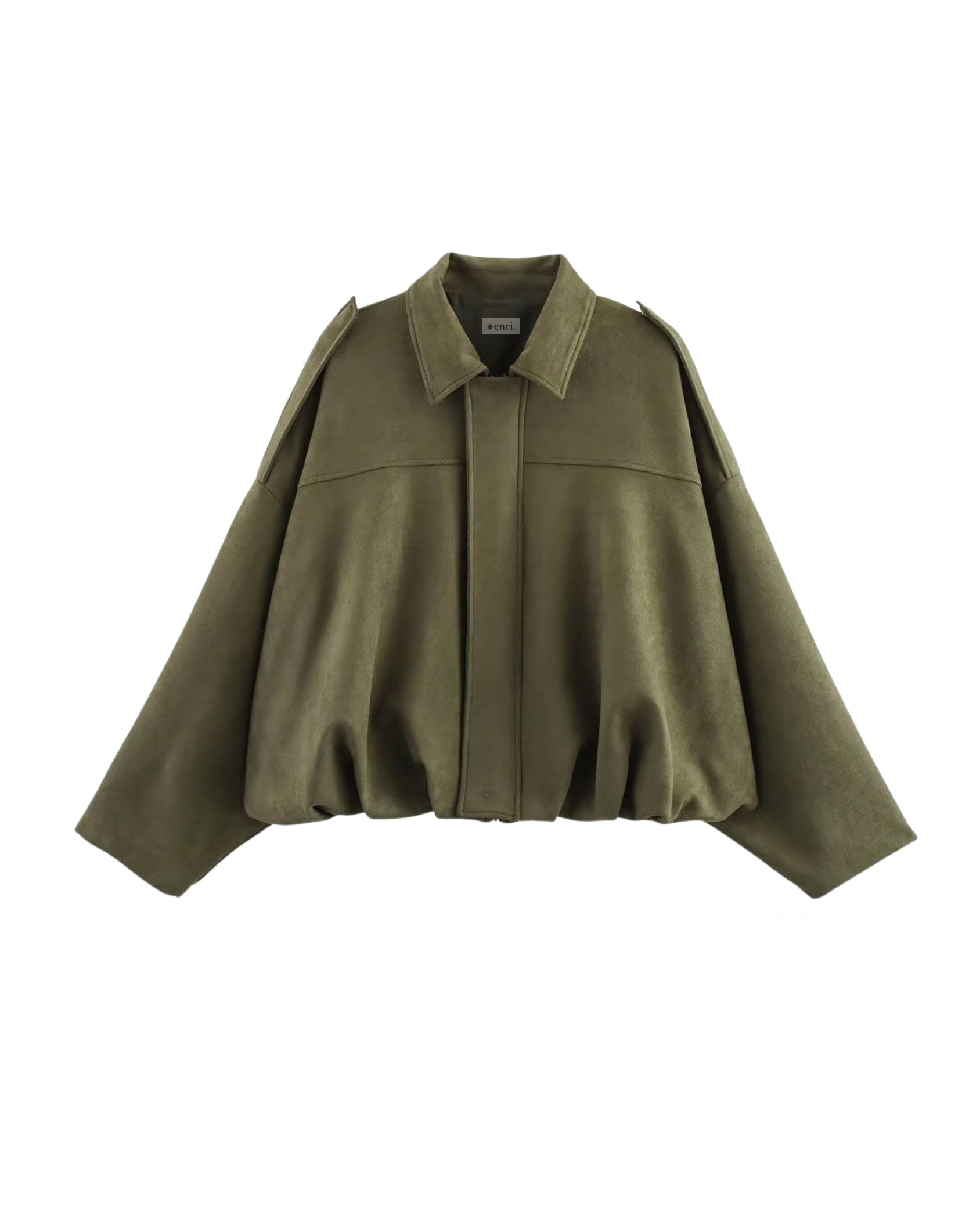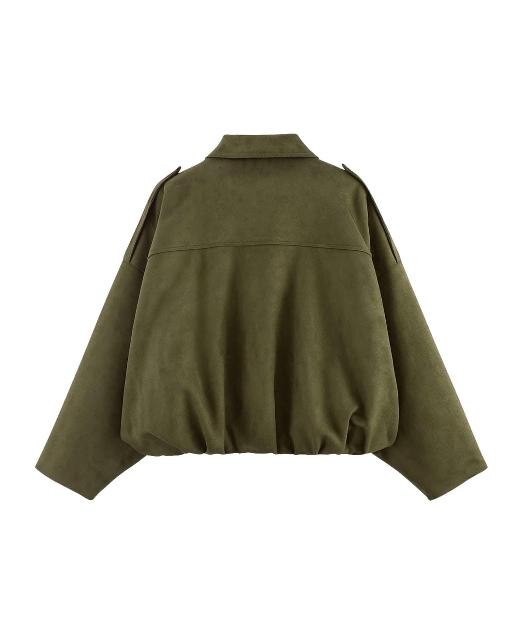 Veste effet suédé avec structure chemise et fermeture zippée complétée de deux boutons pression. Manches longues chauve-souris. Coupe au volume ballon resserré par une taille élastique. Deux poches passepoilées latérales. Une pièce moderne, structurée et ultra facile à porter.